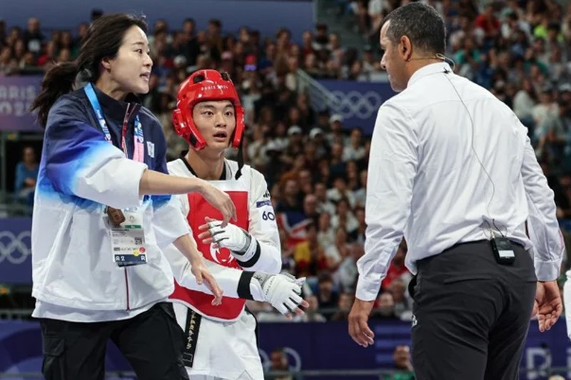 하지만 바로 그때, 오혜리 코치가 강력하게 항의했습니다. 오 코치는 대표팀 코치로서, 선수들의 모든 움직임과 상황을 놓치지 않고 지켜보고 있었습니다. 그녀는 즉시 심판들에게 2라운드 판정을 다시 검토해달라고 요청했습니다. 심판들은 이 요청을 받아들여 다시 영상을 검토했고, 결국 판정을 번복했습니다. 2라운드의 승리는 서건우 선수의 것이 되었죠. 이 결정은 경기의 흐름을 완전히 바꿨습니다.